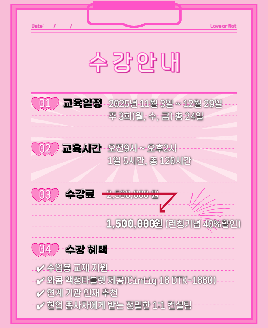 2025-11-03 ~ 2025-12-29 09:00 ~ 14:00 (5H)